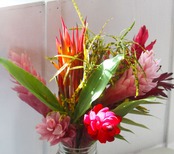 石垣島ではおなじみのジンジャー。和名は赤穂月桃(アカボゲットウ)。ショウガ科 ハナミョウガ属 常緑多年草です。赤色とピンク色の2色入っています。世界中でもジンジャーは情熱的な色で熱帯のお花の象徴として扱われてます。季節的にも今が一番綺麗と生産者の方もお話していました。