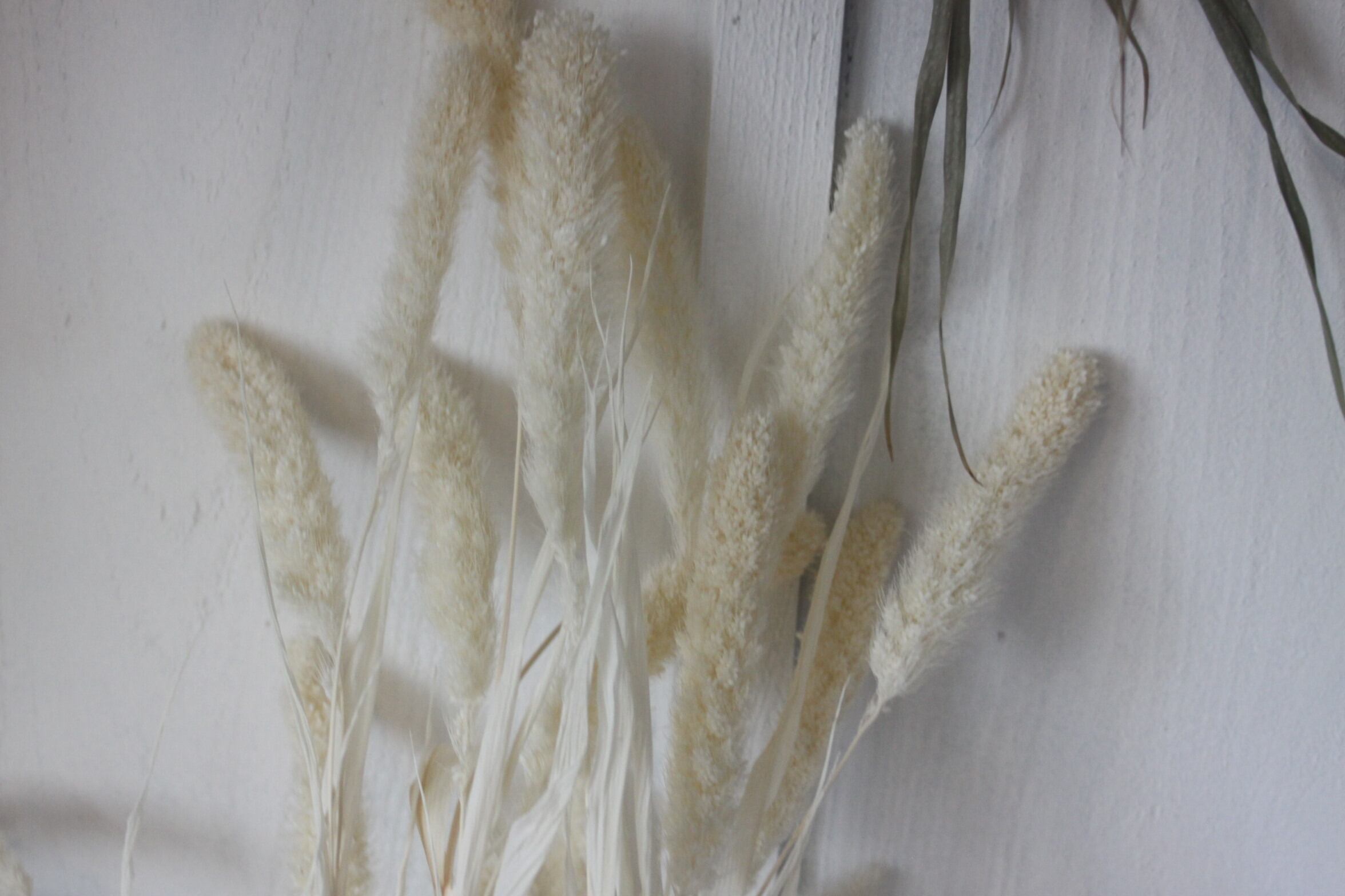 白のドライフラワーは場所を選ばす飾れるのがいい所だと思います。