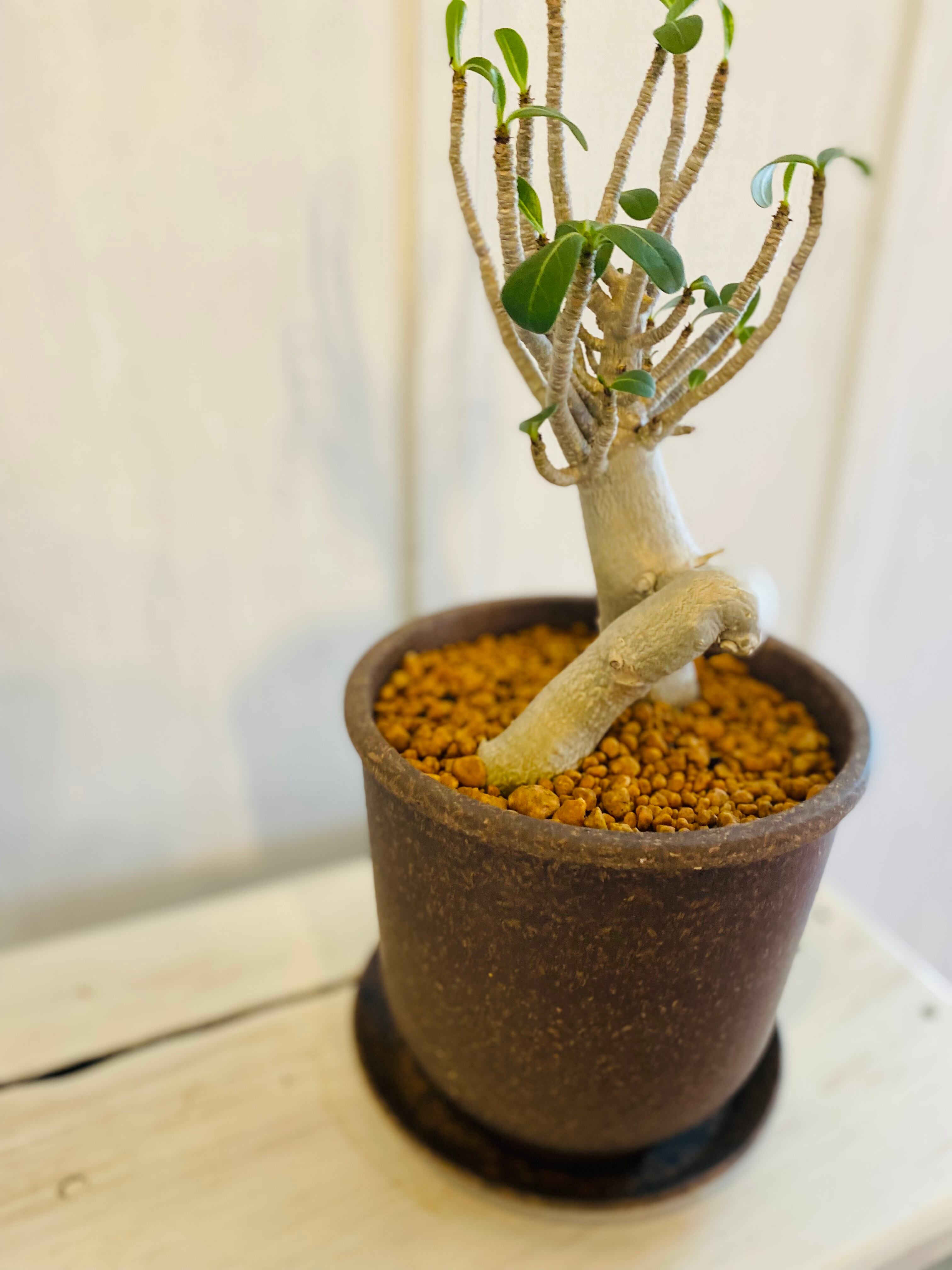 アデニウムはアフリカ、ソコトラ島、アラビア半島原産です。「砂漠のバラ」と呼ばれ綺麗な花が咲きます。 盆栽のように仕立てたりする事もできます。アラビカムは近年タイで品種改良で増えたこともあり、広く流通するようになりました。