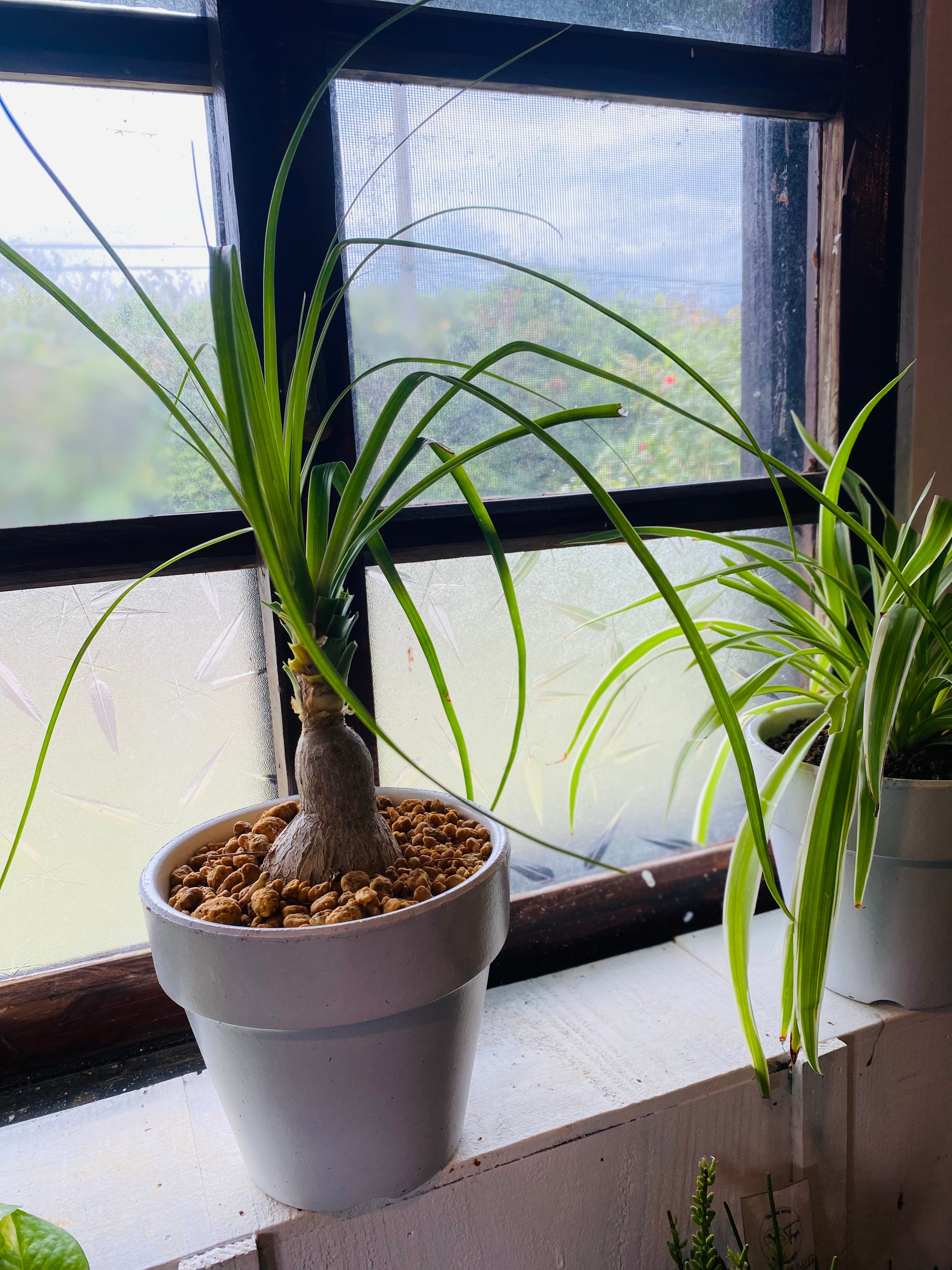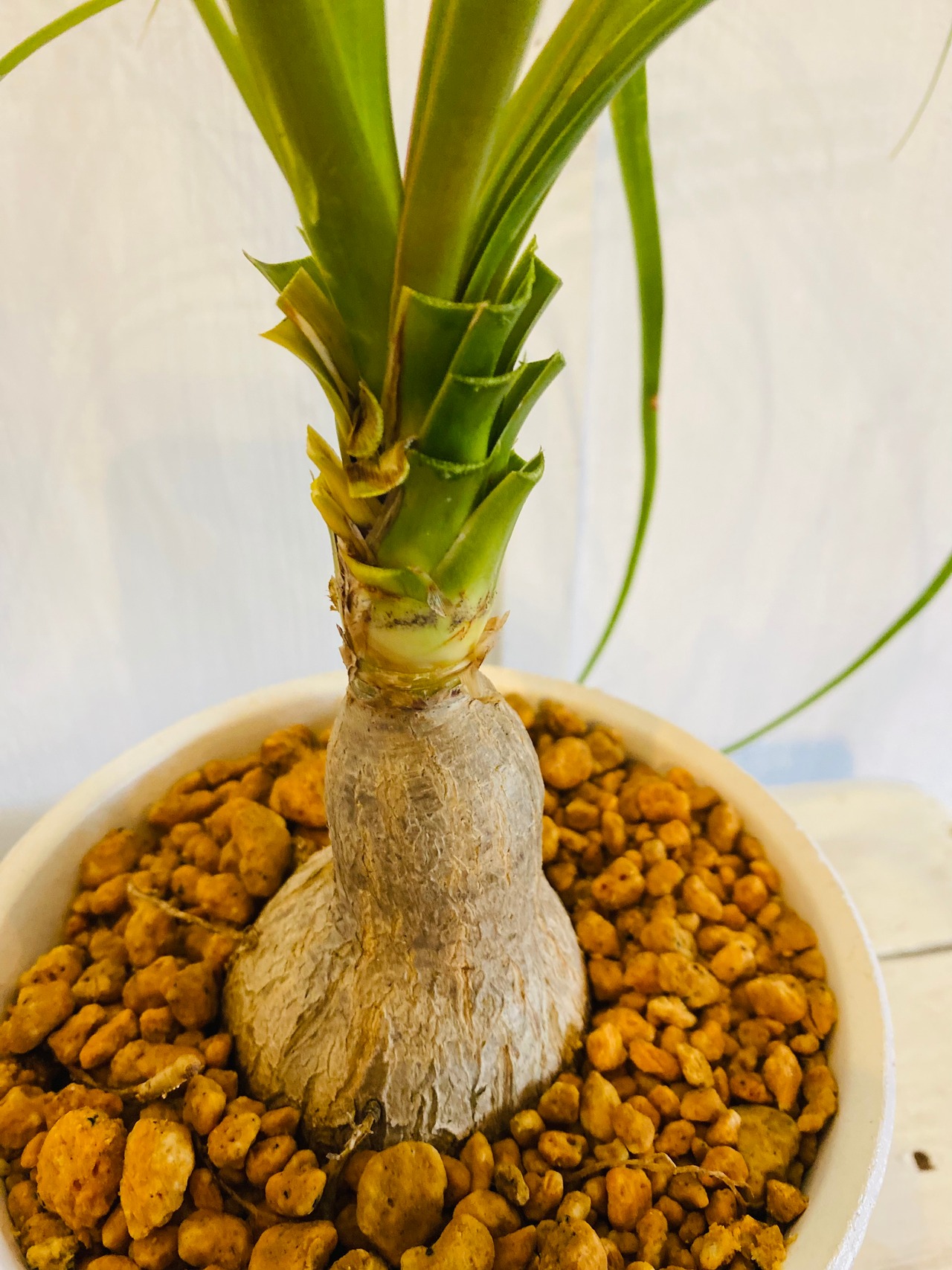 ユニークな姿が魅力の観葉植物で、株の根本が肥大してとっくり状になっているのが特徴です。とっくり状の部分には、乾燥に耐えるために水をためています。葉も垂れ下がる形状で別名で ポニーテールとも呼ばれるいる。